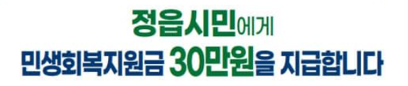 - 2024년 11월 30일 이전부터 거주한 시민 대상 1인당 30만원 지급 (정읍사랑상품권).